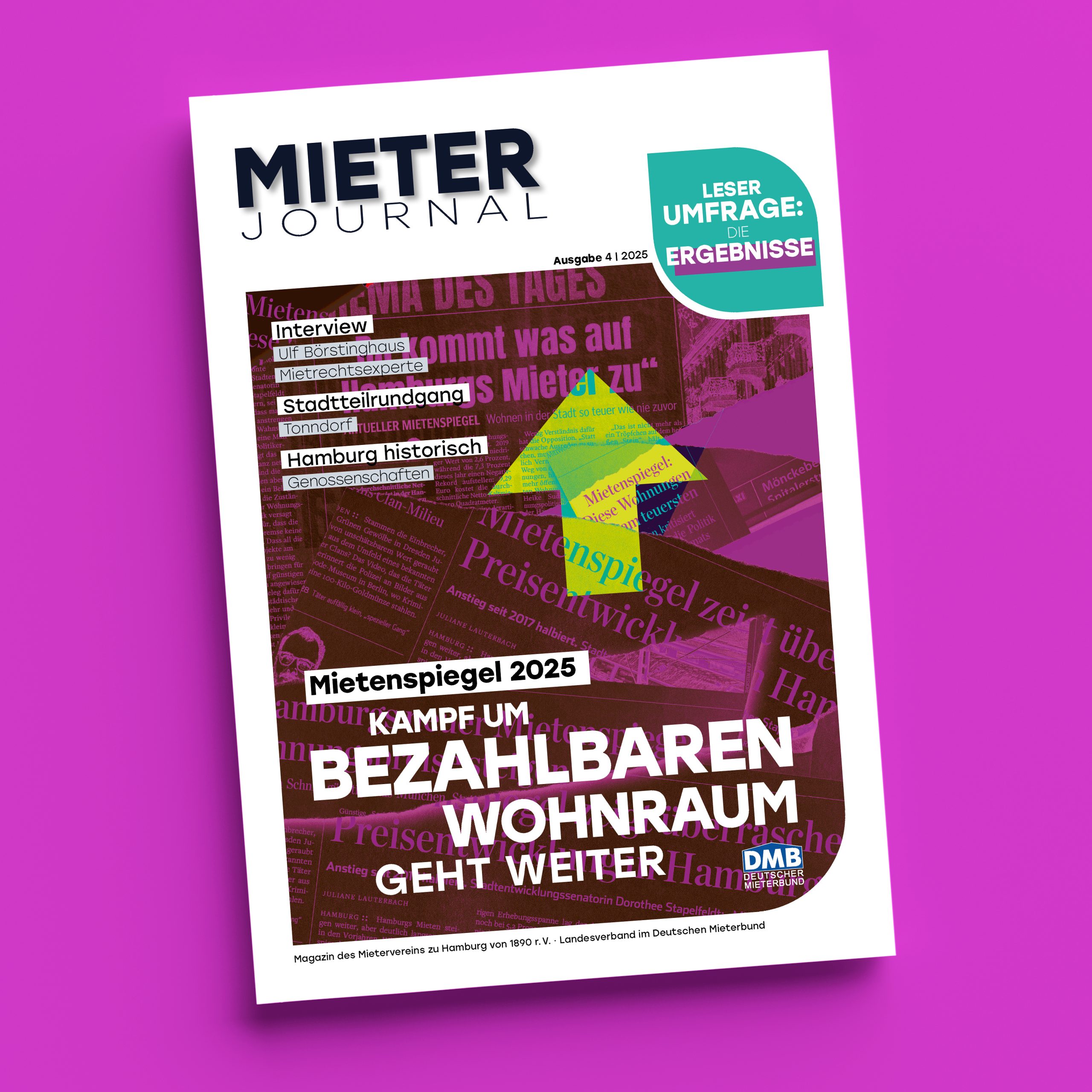 Das MieterJournal, die Mitgliederzeitschrift des Mietervereins, wird unseren Mitgliedern vierteljährlich zugestellt. Es informiert über Wohnungs- und Mietenpolitik, über aktuelle Fälle von Mietproblemen, über Mietrecht, Miete-Urteile und vieles mehr. Hier geht es zu unserem MieterJournal.